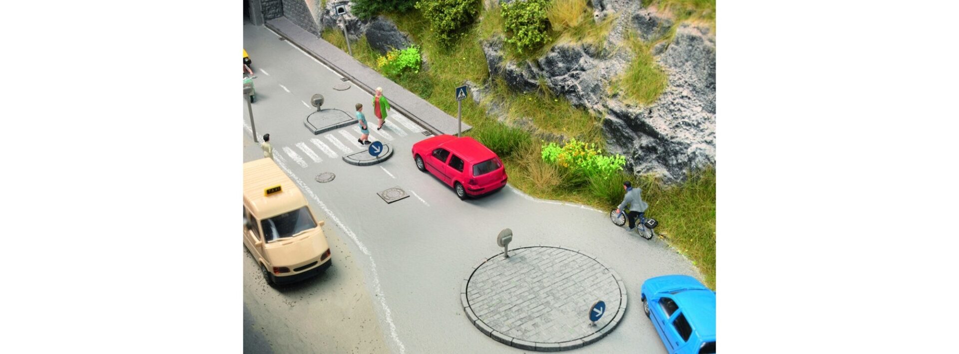 Die NOCH Laser-Cut minis Verkehrsinsel-Set finden sich ideal in einer realistisch ausgestalteten Verkehrslandschaft wieder. Vorbeibrausende Autos, hupende LKWs, Menschen auf dem Fahrrad und auch Fußgänger sind hier unterwegs. Hier ist viel los und Chaos vorprogrammiert. Doch das Verkehrsinsel-Set bringt Ordnung mit sich - ein Zebrastreifen führt die Fußgänger sicher über die Straße, die Autos halten sich an die Straßenschilder und schon ist das Chaos beseitigt. Um auch jeder Modelllandschaft im Verkehr Ordnung zu erhalten eignet sich die Verkehrsinsel-Set perfekt.