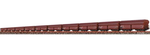 Vorbild: Selbstentladewagen Gattung Fads 175 der DB, Ep. IV. Betriebsnummern: 31 80 696 2 693-1 / 31 80 696 1 273-3 / 31 80 696 1 441-6 / 31 80 696 1 584-3 / 31 80 696 3 004-4 / 31 80 696 2 407-6 / 31 80 696 2 811-9 / 31 80 696 2 704-1 / 31 80 696 1 453-1 / 31 80 696 2 817-6.