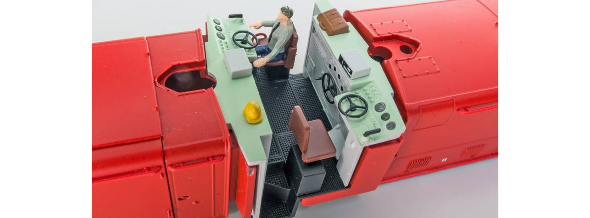 Feinst detaillierte, mehrfarbig ausgeführte Führerstände, Lokführerfigur
