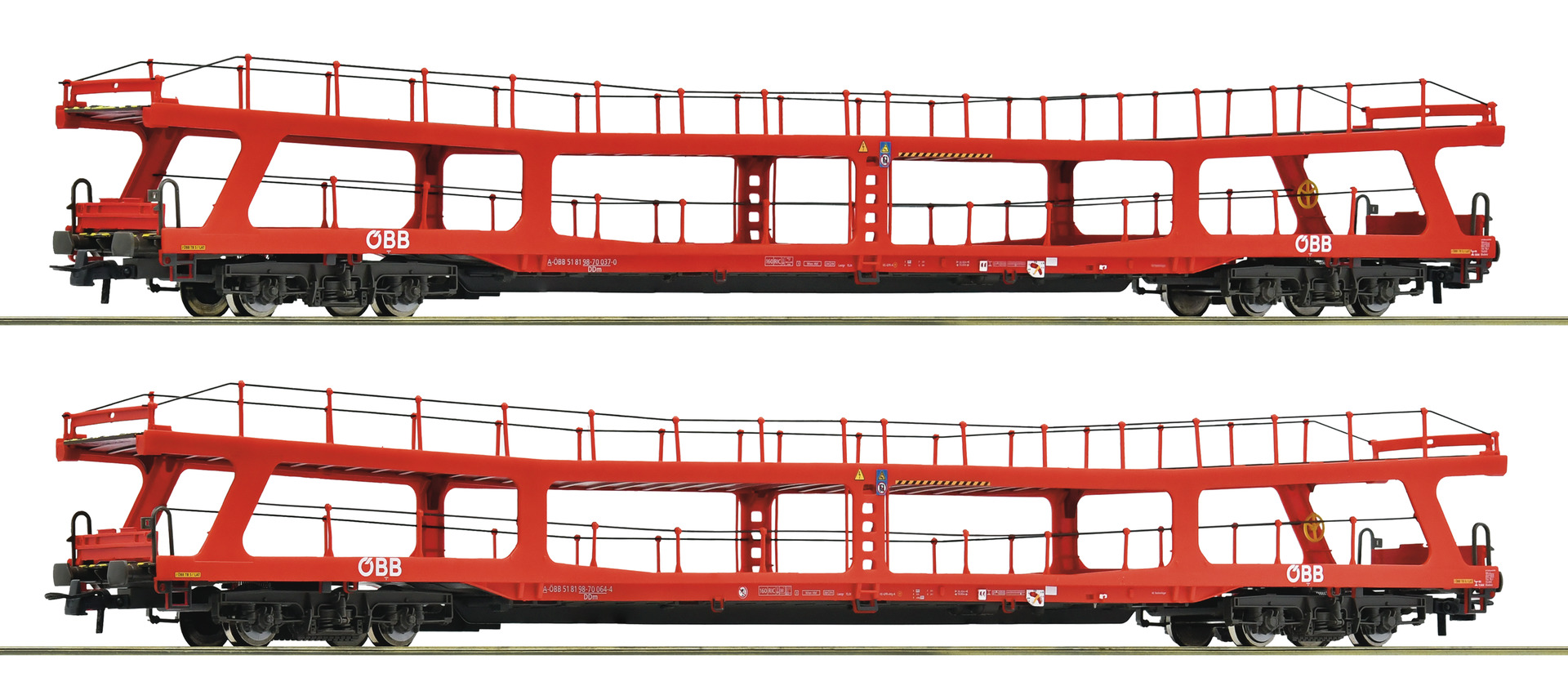 Wagenset bestehend aus zwei Reisezug-Autotransportwagen, Gattung DDm, der Österreichischen Bundesbahnen.